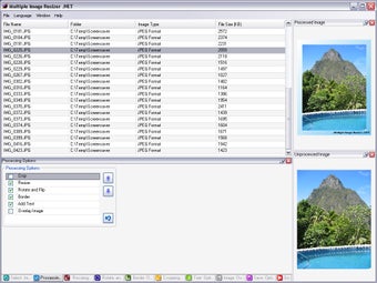 Multiple Image Resizer es una sencilla herramienta que no sólo te permite cambiar el tamaño de tus fotos (como podría deducirse por su nombre) sino que además incorpora muchas otras funciones de procesamiento de imágenes.Podrás realizar funciones básicas como añadir bordes, rotar las fotos, marcaras con un texto y más, todo ello con la posibilidad de hacerlo con múltiples fotos simultáneamente y previsualizar los resultados en tiempo real.El programa soporta los formatos más populares (BMP., JPG, GIF, TIFF, PNG...) y puede también convertir entre ellos. Permite además personalizar la interfaz, eligiendo las ventanas y menús que quieres tener activos y visibles.Nota:Requiere Microsoft .NET Framework